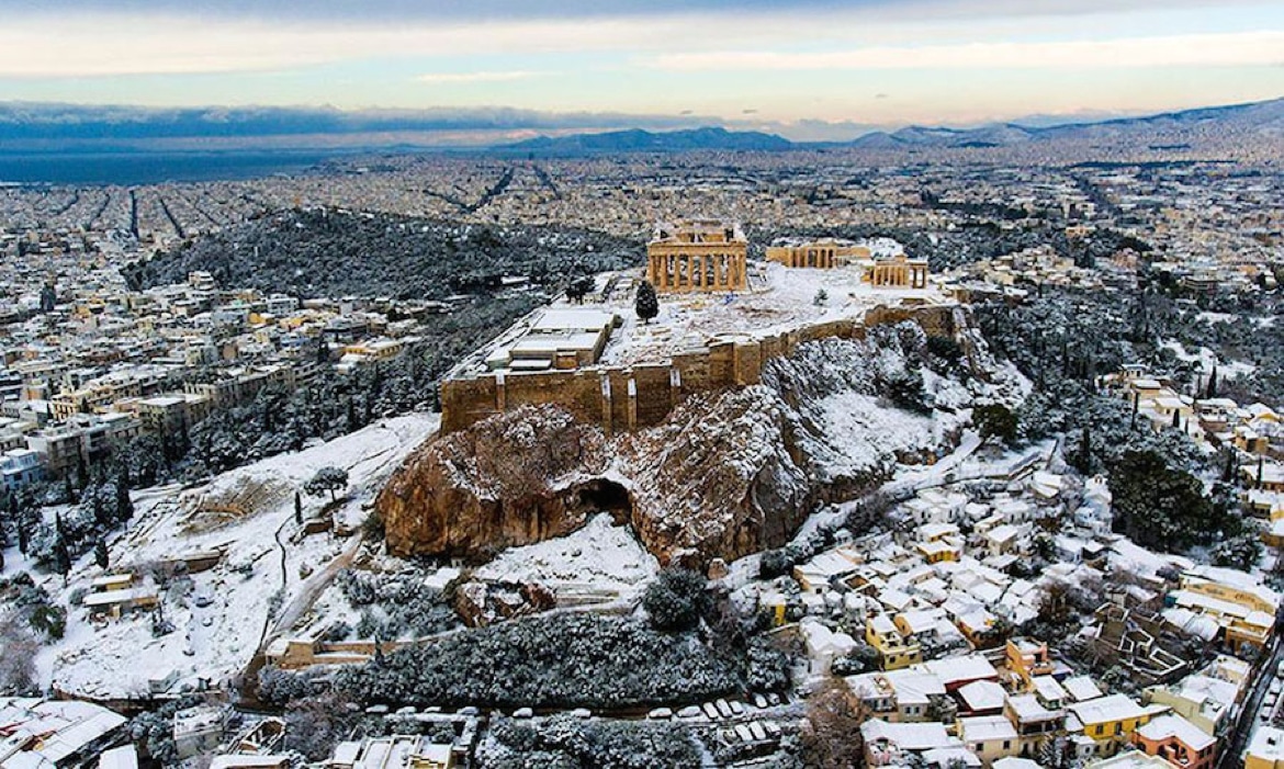 A Siberian cold front sweeping across Europe has caused freezing temperatures and snow in the most unusual of places. Such is the case with Athens, where the ancient Acropolis was coated in a powdery dusting of snow. The sub-zero temperatures across Greece threw the country into a bit of a panic, with flights canceled and schools closing.