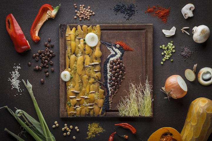 When food stylist Anna Keville Joyce's pet bird died, she mourned for its loss in a tangible way. She utilized her professional creative skills to aid in the healing process, and the results are beautiful. A Tribute to Budgie is a series of elegant birds comprised of food and arranged on plates. Joyce came up with the images and crafted the illustrations while photographer Agustn Nieto documented the series.