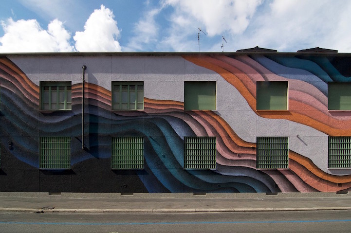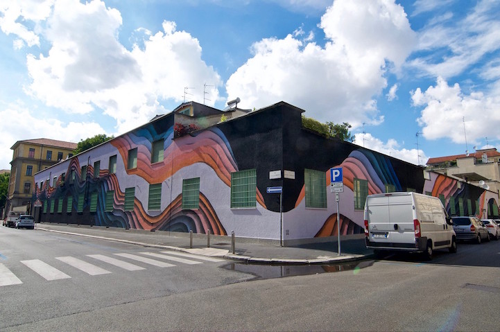 We already know German artist 1010 for his vivid murals, which appear like multilayered, technicolor portals into parallel dimensions. Now, he has opened a new show at Milan's 10 A.M. ART gallery, with an exhibition that includes not only a mural across the building's entire exterior in his hallmark style, but also a collection of paintings displayed inside.
