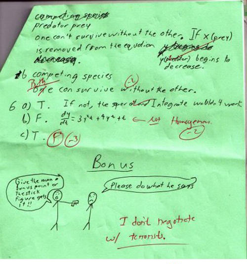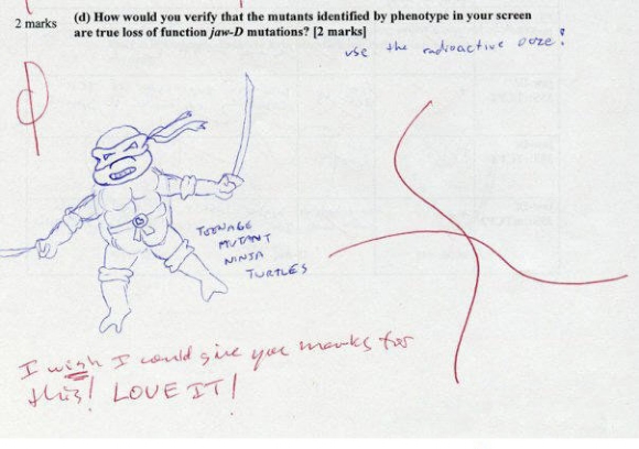Although these kids probably got an F on these exams, they should of got an A+ for creativity. These exam papers remind me of the past when we were all stuck in boring classrooms taking tests that were pretty pointless. Credit to the kids who made the best of the situation and had the guts to turn these exam papers in.
