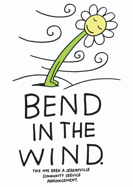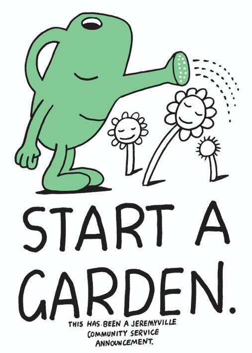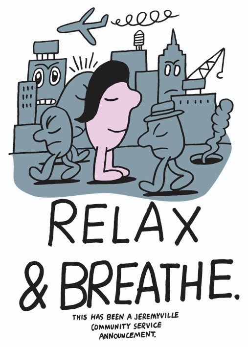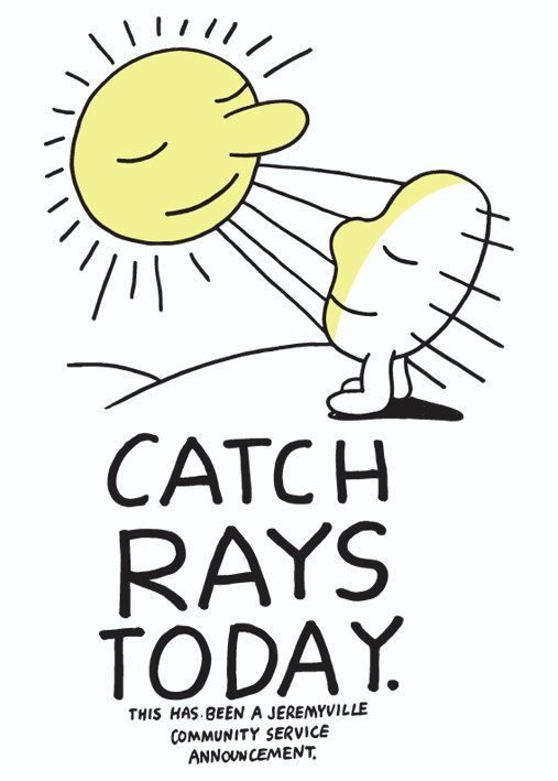 If you need a little help to get you through the day, these community service announcements by artist Jeremyville are just the ticket. They each serve as little reminders to stop and look around, to take a moment for yourself and appreciate what's around you. In this crazy and chaotic world, it's easy to get bogged down. The harder part is muddling your way through it and remembering what's truly important.