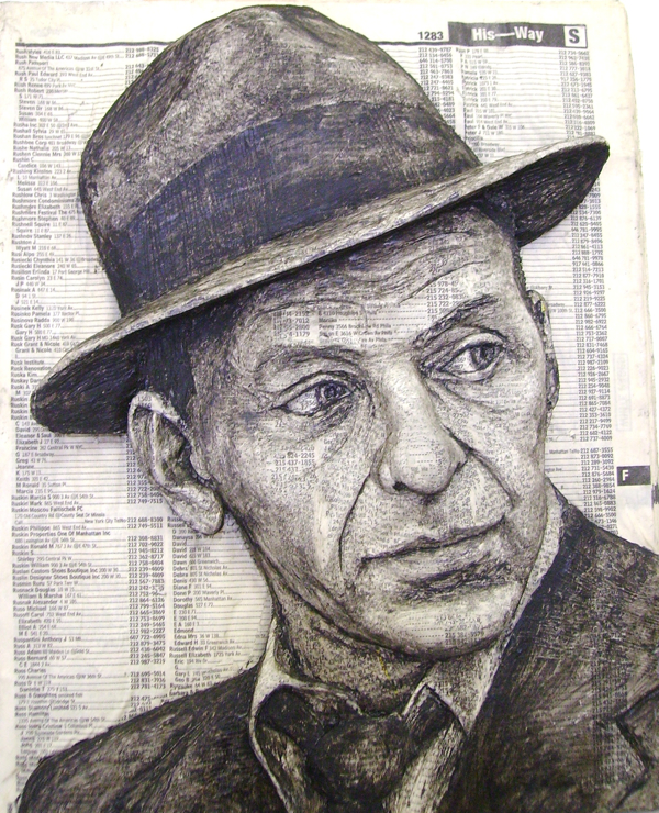 Using an entire phone book and some black paint, to bring out the detail, Alex Queral creates three dimensional relief sculptures that depict famous faces. Why? “I started using well-known faces simply because they were much easier to find in the media, not necessarily because I am a fan of a particular person depicted,” he explains. “I like the challenge of trying to capture a well-known face, especially one that I have been familiar with for a long time. I also like the juxtaposition of a well-known face with the anonymity of the listing of names, adding an additional layer of meaning by contrasting the anonymity of the listings with the famous face.”