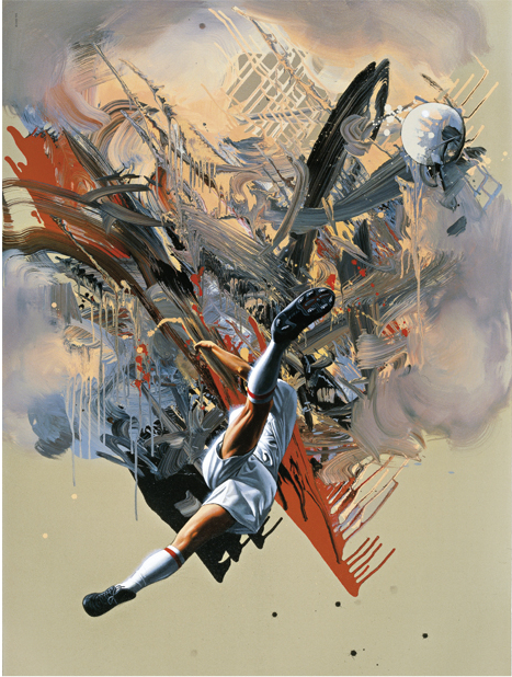 The 2010 series encompasses artworks that are diversified in style and expression, ranging from Kentridge's “Bicycle Kick” that appears to be a leap of joy to Isolde Krams's “Red Elephant” holding a football in its trunk, and from Peter Eastman's night view of a stadium building site in South Africa to Hassan Musa's transfer of the biblical scene of Jacob battling with the archangel into football.
