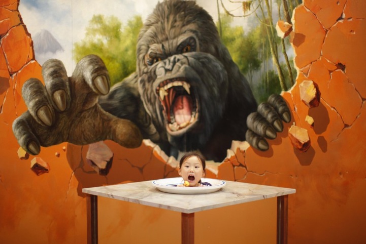 Why simply look at art when you can be part of it? Last month, travelers Michael Powell and Jrgen Horn shared their fun photographic adventures at The Trick Eye Museum in Busan, South Korea where they basically had a good time taking entertaining pictures of themselves interacting with three-dimensional paintings. Similar interactive exhibitions that display these types of fantastic optical illusions the duo documented can also be found in China, currently on display as part of the 2012 Magic Art Special Exhibition, where the audience has the power to transform into the performer.