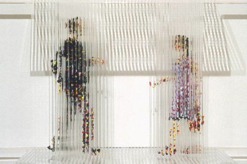 Materials used: Splotches of acrylic paint on hung monofilament. [link]