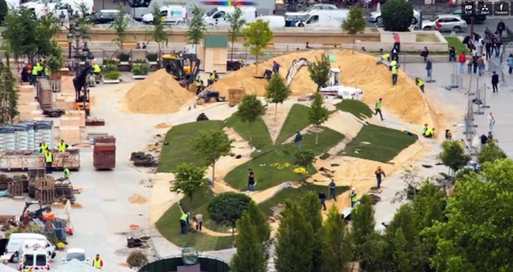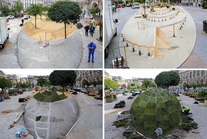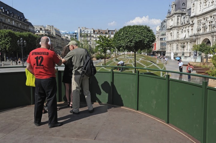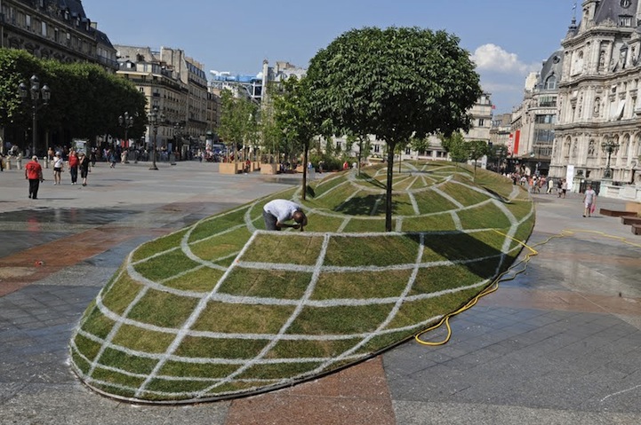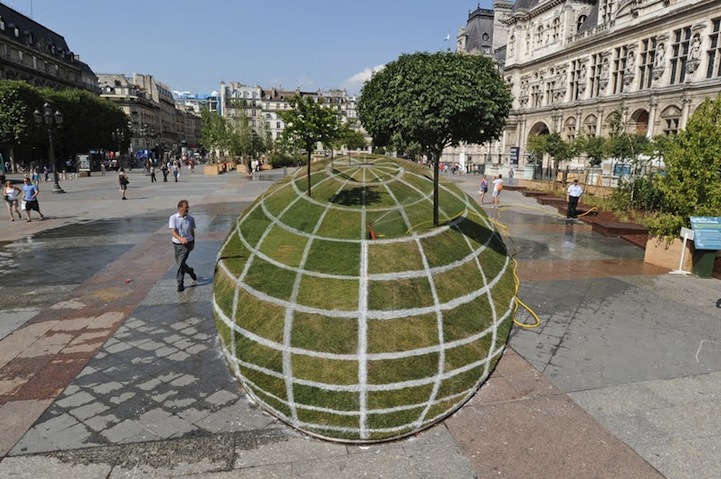 Artist François Abélanet plays tricks on our eyes, making us believe there is a three-dimensional grass globe sitting right in the middle of Paris' City Hall. When viewed at different angles, however, the illusion quickly falls apart.