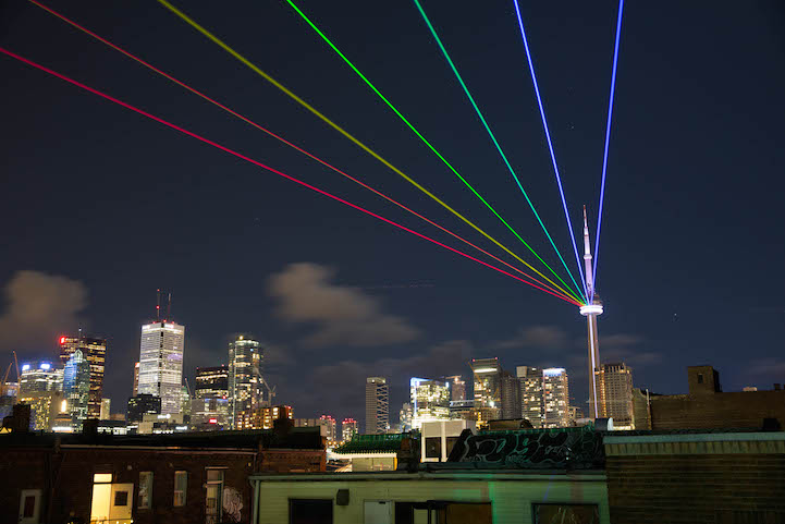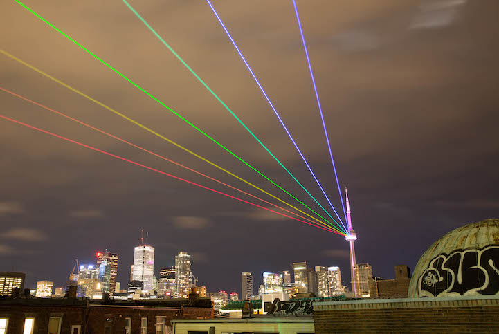 Powerful Laser Rainbow Beams Onto Toronto’s CN Tower