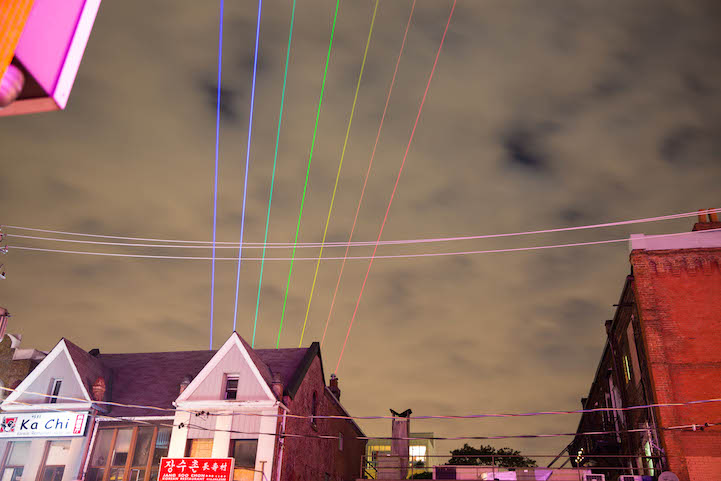 Global Rainbow is part of Toronto's annual event, Scotiabank Nuit Blanche, which brings contemporary art to the masses in public spaces.  Nuit Blanche is now universally translated as “Sleepless Night.”  The event was originally conceived in Paris in 2002, in an attempt to bring contemporary art to the masses in public spaces.