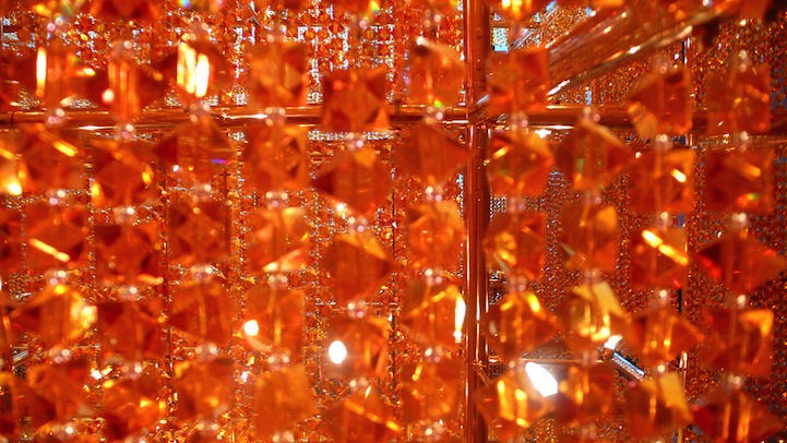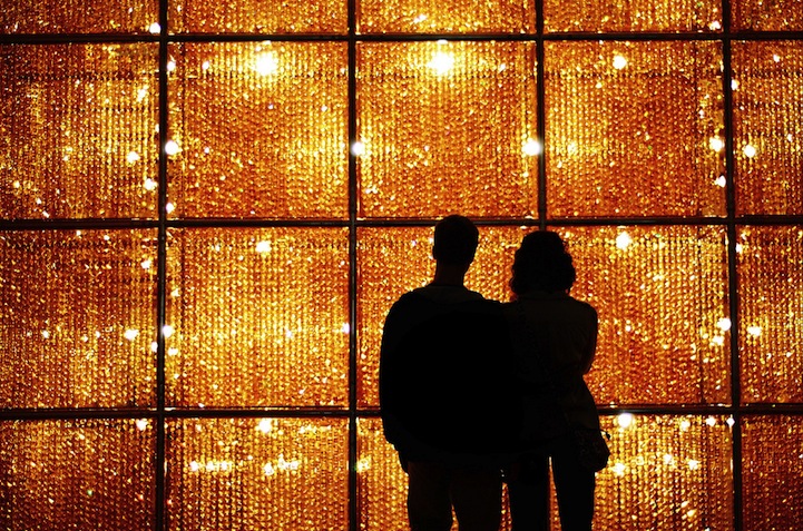 Renowned artist Ai Weiwei has dazzled us in the past with his eye-catching works of art and this piece titled Cube Light, first introduced in 2008, is no exception. The massive structure is, essentially, a chandelier affixed with thousands of crystals. Illuminated from within, the cube emits a sparkling array of light that's bound to draw the gaze of any passerby. The artist's intention with the contemporary piece is to accentuate the overly luxurious lifestyles that are praised and pined after, especially in western culture. It is a physical representation of an overabundance of opulence. After all, who needs a chandelier if it takes up the entire room?