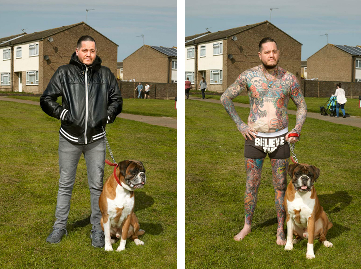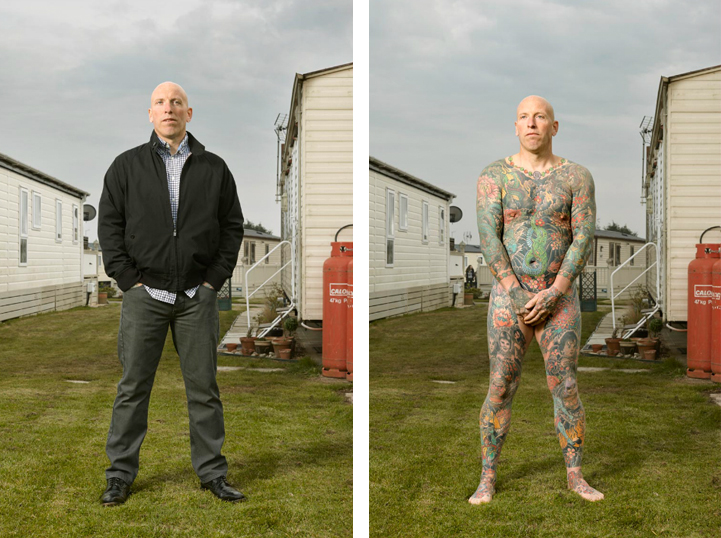 The revealing photographs demonstrate the complexity of human identity. To these people, clothes symbolize just one part of their lives. Powdrill's subjects wear suits, tailored jeans, and pressed shirts–they are business professionals, hardworking laborers, and responsible parents. Wearing these garments make us view them in a certain way, one that reflects a “civilized” demeanor. But when they're undressed, if offers a different aspect of their lifestyle, and begs the question: do we change our attitude towards a person once we discover they've got a giant tiger across their back? Also, can any one image truly reflect the complexity of a human's character?