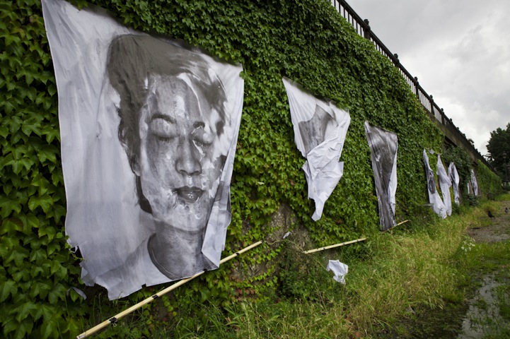 The Paris-based photographer equates the feeling of being immersed in a vat of water to living in a big city. One can only take so much of it until they are overwhelmed by an invisible force. There's a similar stress in both situations that is intangible. The only way to free yourself is to step out of that environment. To further press on his theme of submersion in city life, Grosdidier presented large-scale prints of his works on the streets of Paris, alongside the Canal Saint-Martin, which were eventually weathered down by torrential rainstorms.