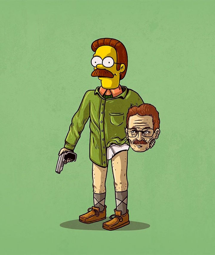 Alex Solis continues to marvel us with his clever series Icons Unmasked. The witty cartoon-style portraits reveal the unknown “identities” of famous characters in pop culture, and their costumed alter-egos might surprise you. All along, a babbling Minion has been lurking beneath the facade of a Storm Trooper, while the evil Mister Burns is really the one controlling famed billionaire-turned-politician Donald Trump.