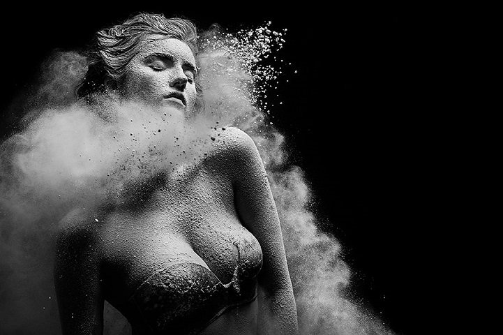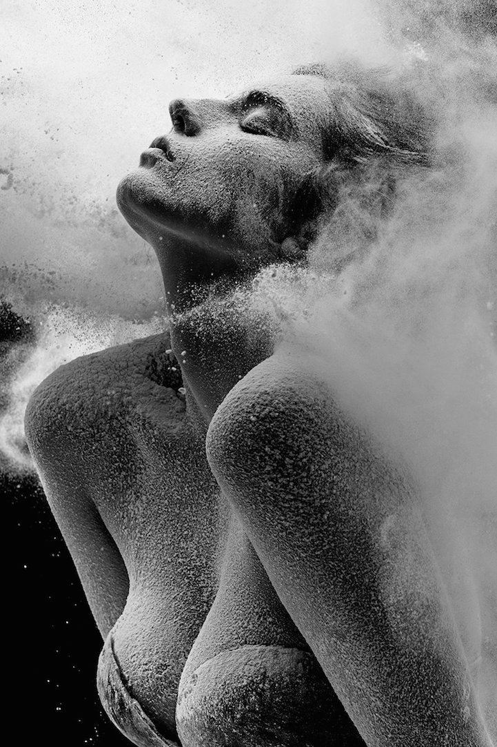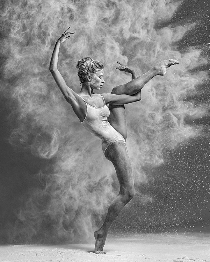 The artist, who had previously studied law in Russia, has found that his true passion lies in dance photography. With this series, known as The Mirages, the artist incorporates the simple element of flour, allowing his subjects to work with the fine powder in artistic ways. His lens captures each dancer's movements as the bleached grains cling to and accentuate the lines of the human body, not to mention the way the flour floats in mid-air, mapping out the paths of motion of each limb. His collection is explosive and expressive, each image stunning in its own right, adding a visual sense of intensity within each frame.