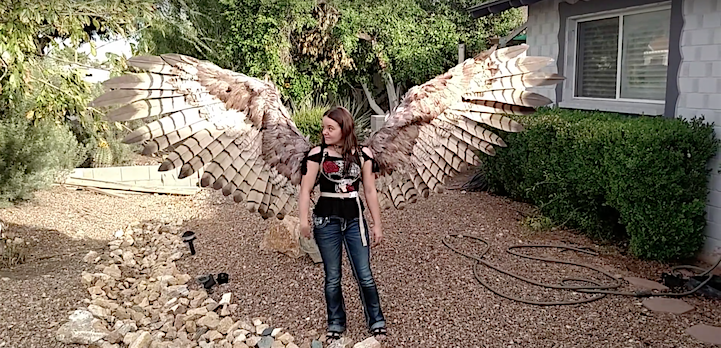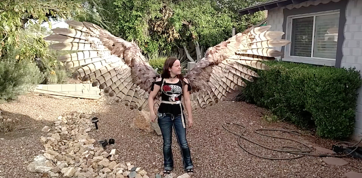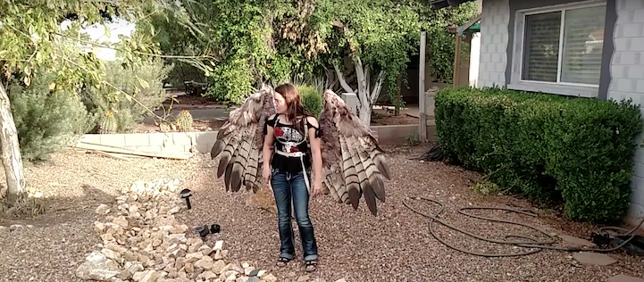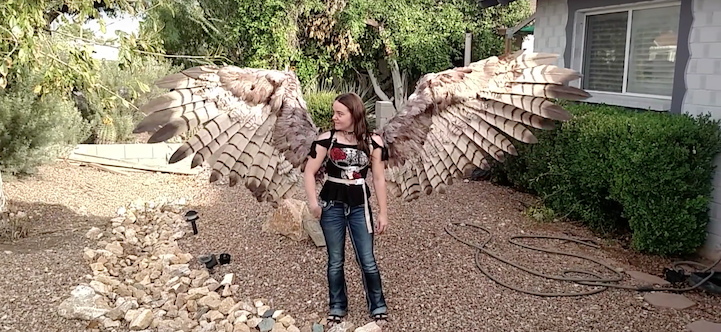 Artist Alexis Noriega of The Crooked Feather has designed a handmade pair of bird wings fit for an actual human. As a matter of fact, the artist's creation is equipped with pneumatic automation, which means that the wings can extend and retract through a sophisticated air pressure system, operated at the flick of a switch. To create the base of this impressive construction, Noriega used fabric, glue, and wire. She then layered on a series of bird feathers and modeled her design after hawk wings. To make the wings move, the artist utilized a small paintball tank, which can be hidden on the back of one's belt. What results is a 15-20 lb. pair of wings that will make any user feel as though they can soar through the sky.