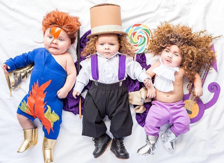 The collection of costumes ranges from pop culture staples—a sweet homage to the late David Bowie, Gene Wilder, and Prince has proven to be a particularly popular post—and presidential candidates—yes, even the hair—to colorful flowers and sweet peas-in-pods. Ali creates the looks with help from Brittany Jepsen, owner of DIY craft website The House that Lars Built and a likeminded creative who, according to Ali, “basically made all my baby costume dreams come true.”
