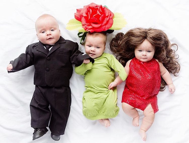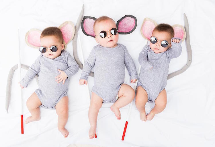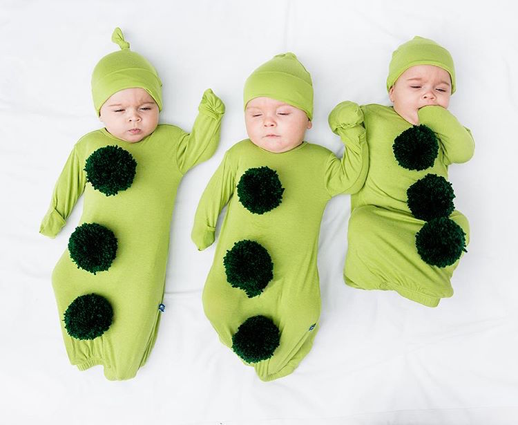 Unable to pick just one set of costumes for 6-month-old Penelope, Ethan, and Alejandra, the first-time parents decided instead to showcase a creative compilation of getups. Affectionately called “PEA”—an acronym that combines the first letter of each baby’s name—the adorable bunch has been modeling homemade ensembles on Ali’s Instagram page.