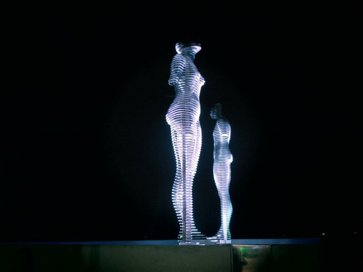 This 8-meter-tall steel sculpture by Georgian artist Tamara Kvesitadze is not only a stunning example of mechanics and design, but also a depiction of eternal love between nations. The structure symbolizes the story of Ali and Nino, two lovers from different religious backgrounds. Every night at 7pm, the two figures begin changing positions, moving towards one another until they meet in a brief embrace, before passing through and continuing on their path. At night their dance is lit up with colourful undulating lights, creating an emotional mood and a stirring sight in the seaside boulevard of Batumi, Georgia