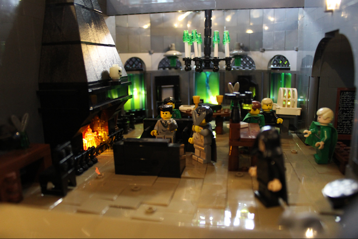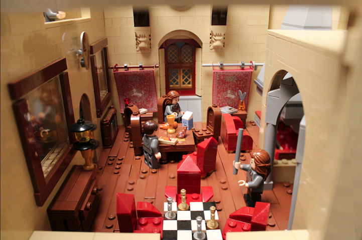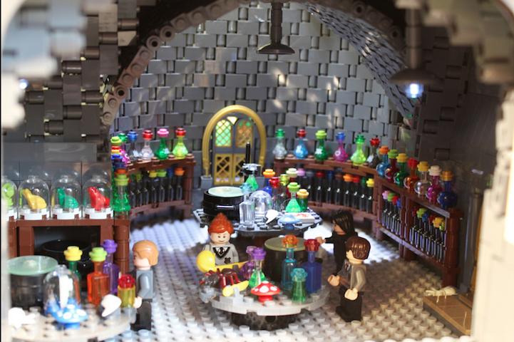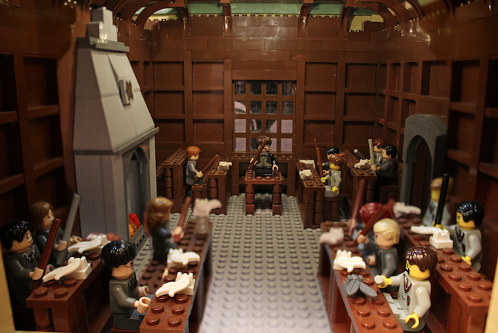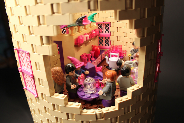 Inspired by a desire to create an accurate model with four walls and a roof as opposed to the one-sided, mass-produced Lego Harry Potter sets, Finch put a significant amount of research into her design. She painstakingly compared Hogwarts geography from the book series and the movie series and even took the Harry Potter studio tour in London to get ideas. The finished product reflects this dedication: The model is complete with three-dimensional “moving” portraits hanging on castle walls, hovering Cornish pixies and a lurking Peeves in the stairwell.
