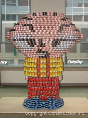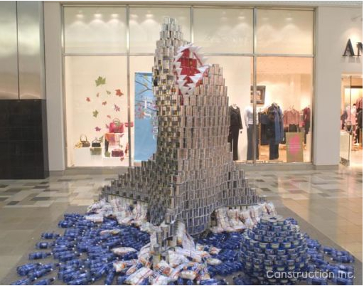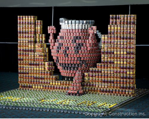 Structures take about 8-12 weeks to complete and thousands of cans are used in the process. At the close of the exhibitions all of the canned food is donated to local food banks for distribution to emergency feeding programs that include pantries, soup kitchens, elderly, and day care centers. Since its inception, ten million pounds of food has been donated to aid in the fight against hunger.