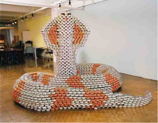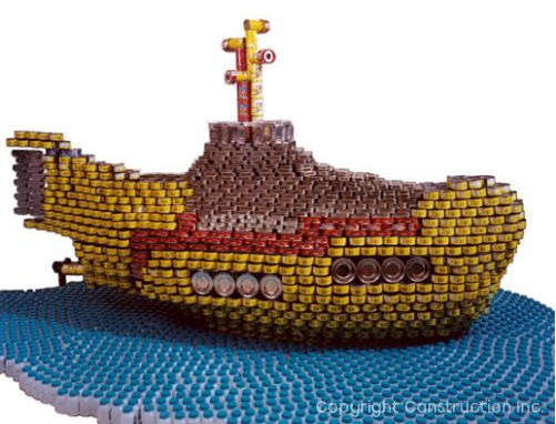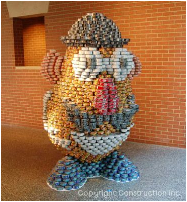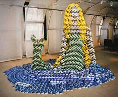 You know all that canned food that we give away during Christmas time? Maybe we should create some art with it before we give it away…