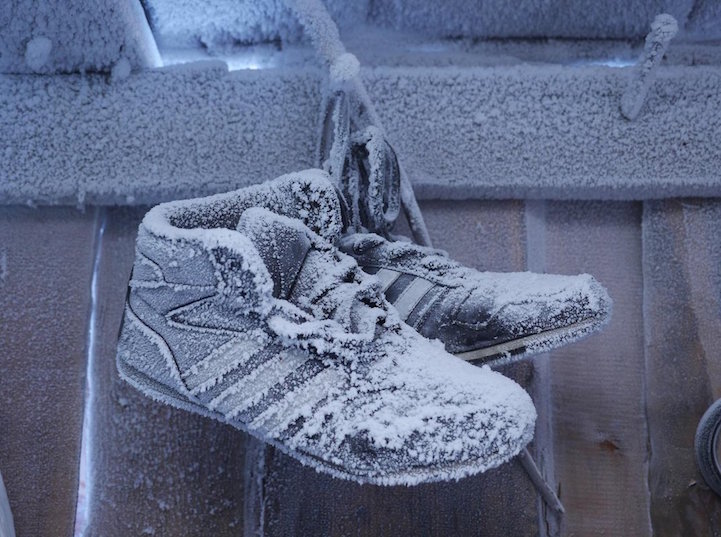 Summer shoes waiting out the winter in a shed in the suburbs of Yakutsk.