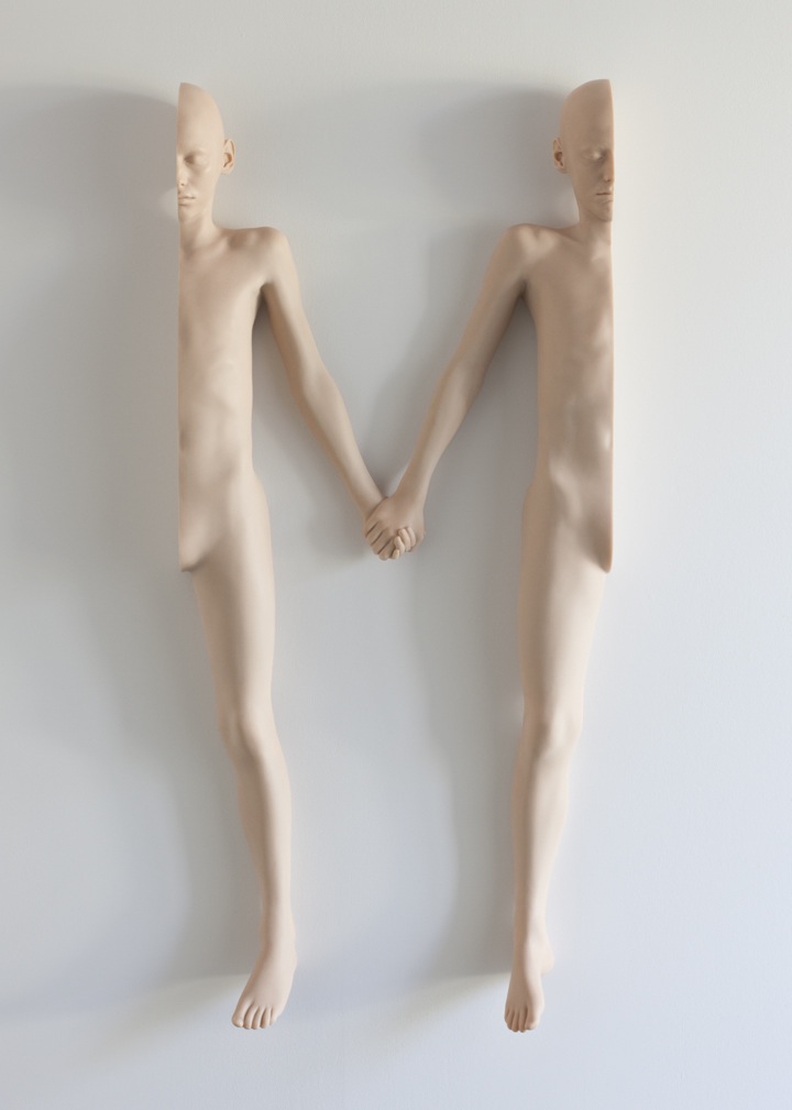 Whether it's a bare chest featuring the strong impression of hands, as though the body were made of memory foam, or two cast aluminum faces being magnetically drawn to one another, Krisr's work presents an alternative perspective of realistic figures. By presenting works that are far out of the norm, the artist draws attention to the conventional composition of human figures. Additionally, the sculptures challenge the standards of beauty and body normalcy through their unorthodox modifications.