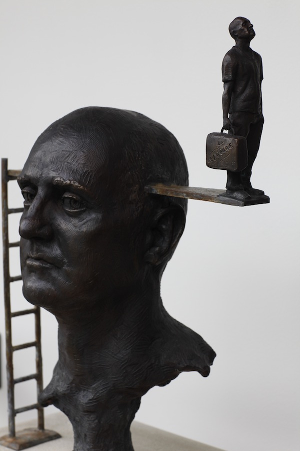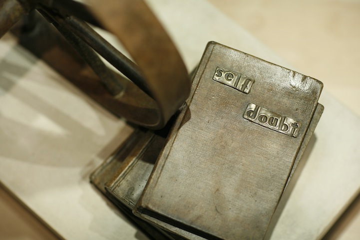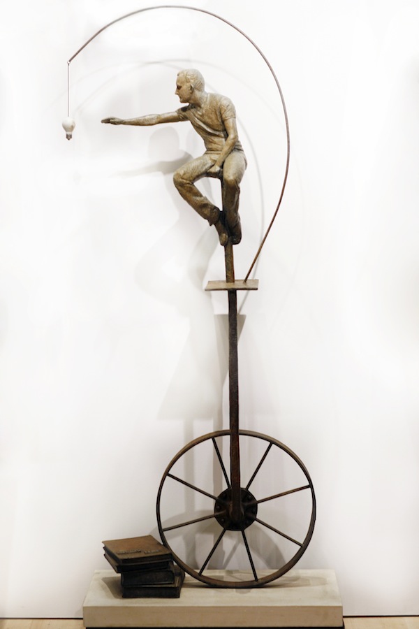 In this bronze and cement sculpture, Andrew pays homage to the creative people of this world who are constantly chasing the lightbulb of inspiration, like a donkey after a carrot. One may never reach the lightbulb, but as long as you continue to pursue it, you will at least be moving in the right direction. The only roadblock is self doubt.