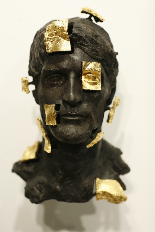 Created using patina on bronze and twenty-four- karat gold leaf, this original wall-mounted sculpture symbolizes that even during life's hardest trials, some parts of us still shine.