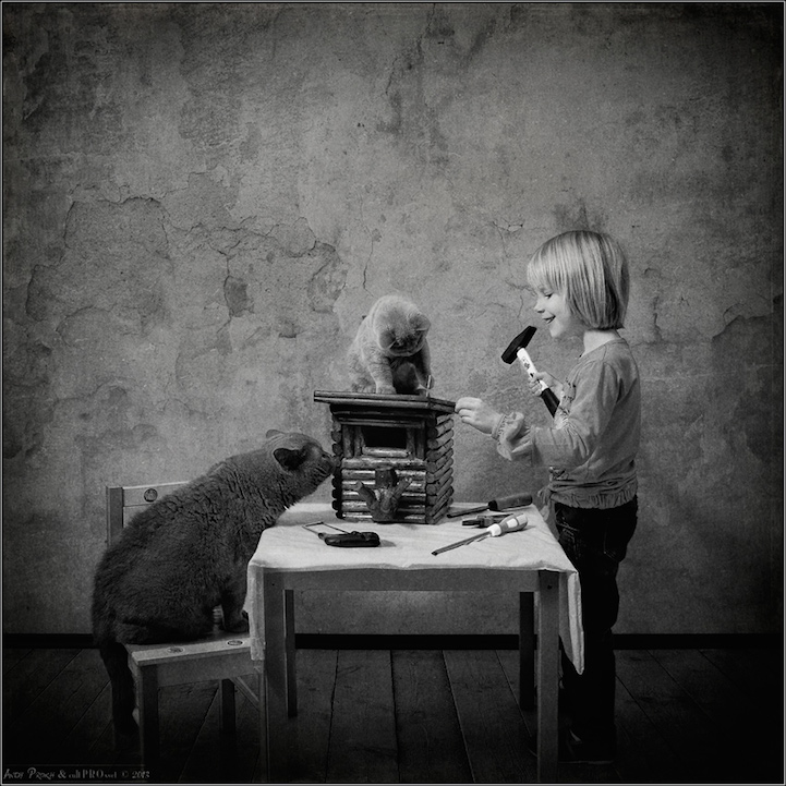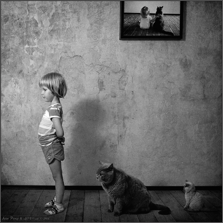 Since we first wrote about the heartwarming friendship between a girl and her cat, Russian photographer Andy Prokh has continued to enchant us with charming photos of his daughter Katherine growing up with her adorable British Shorthair cat LiLu. Although both Katherine and LiLu are now one year older, the affection between the two friends is as sweet as ever, with one significant change–the addition of a Scottish Strite kitten to the family.