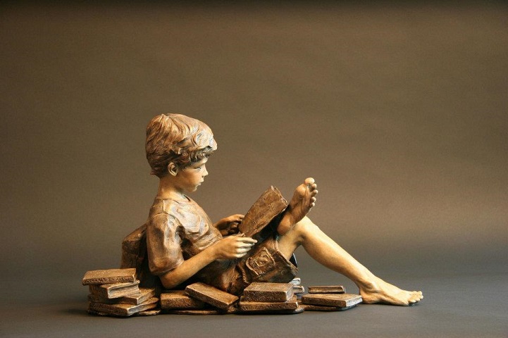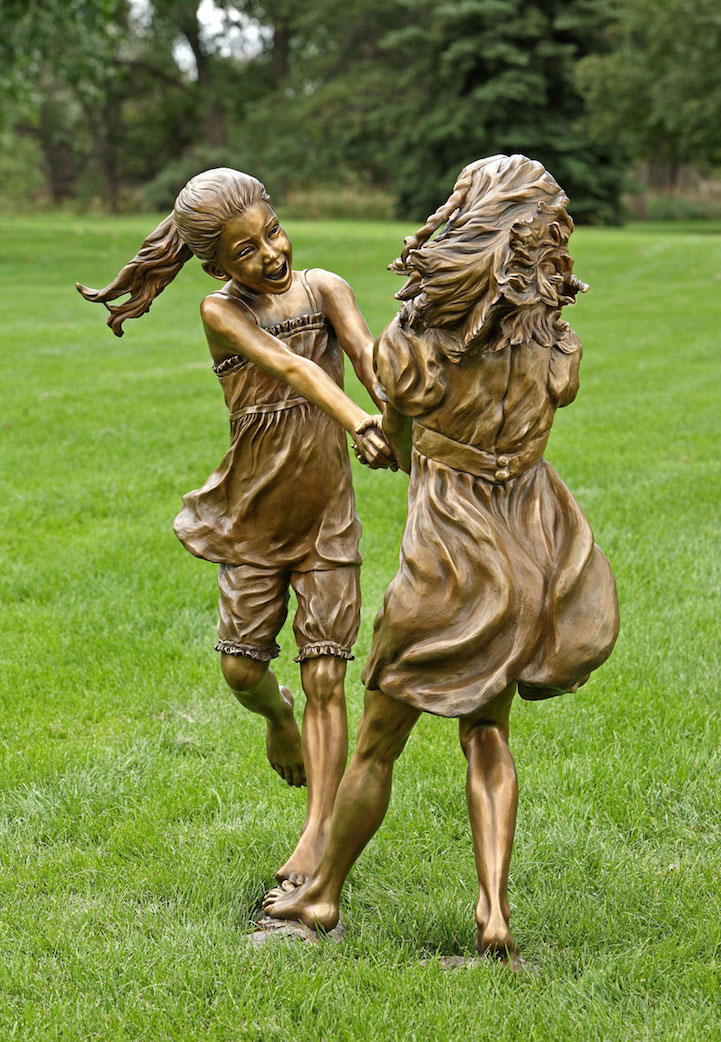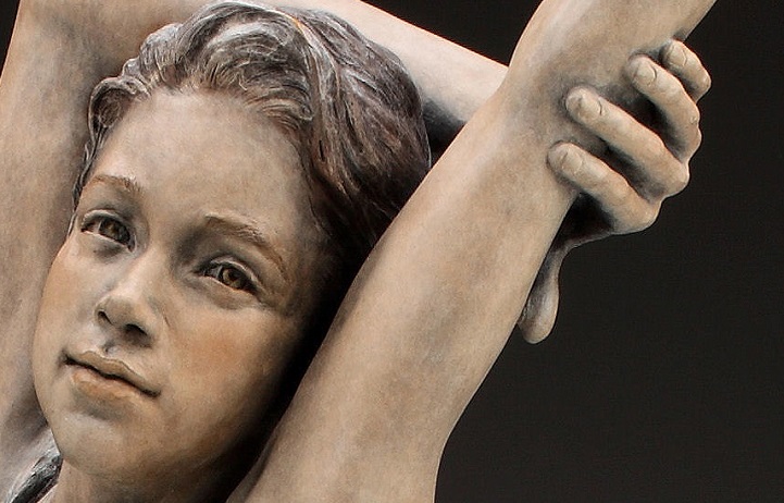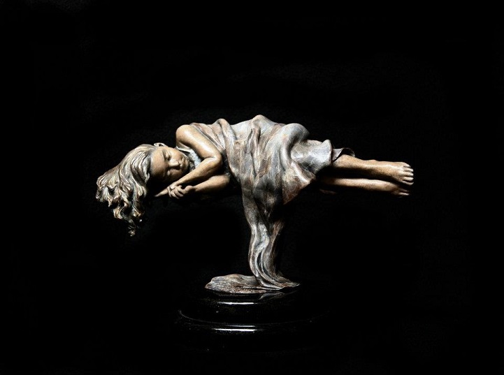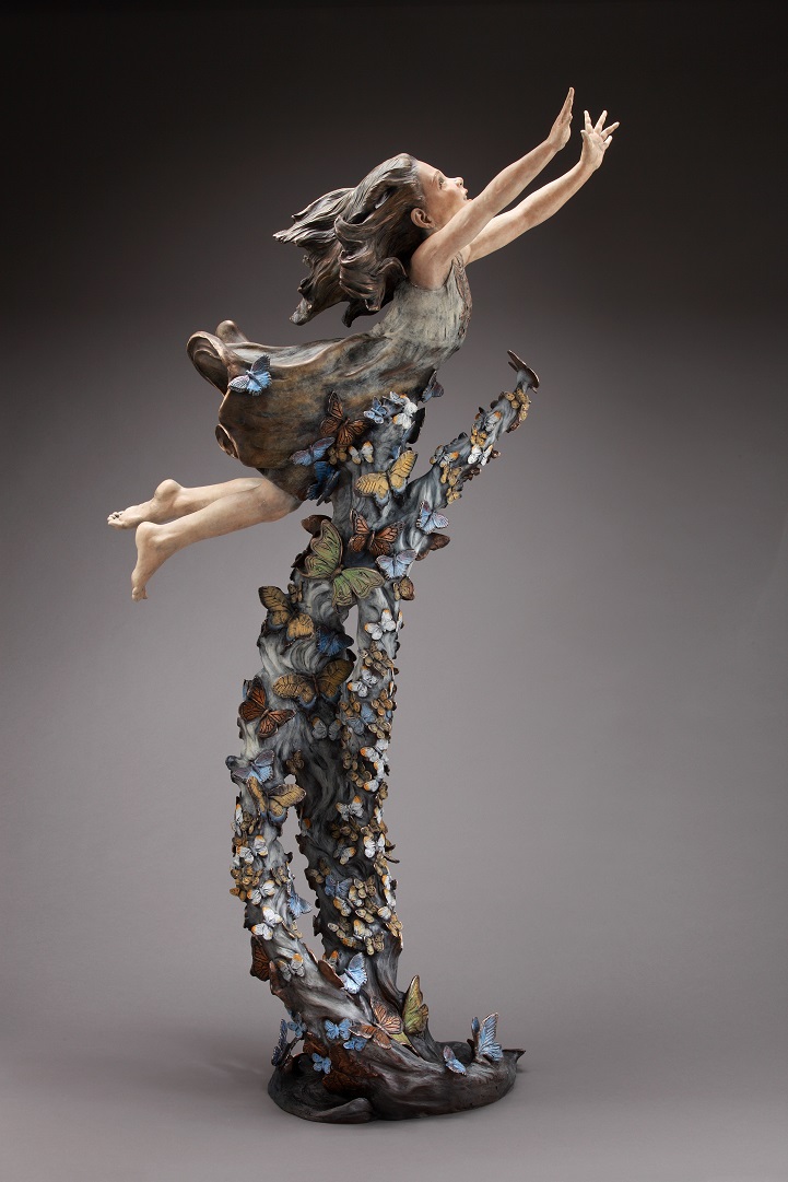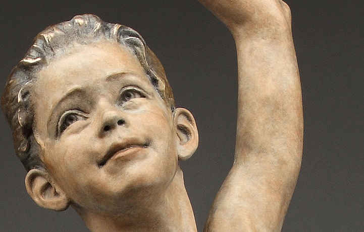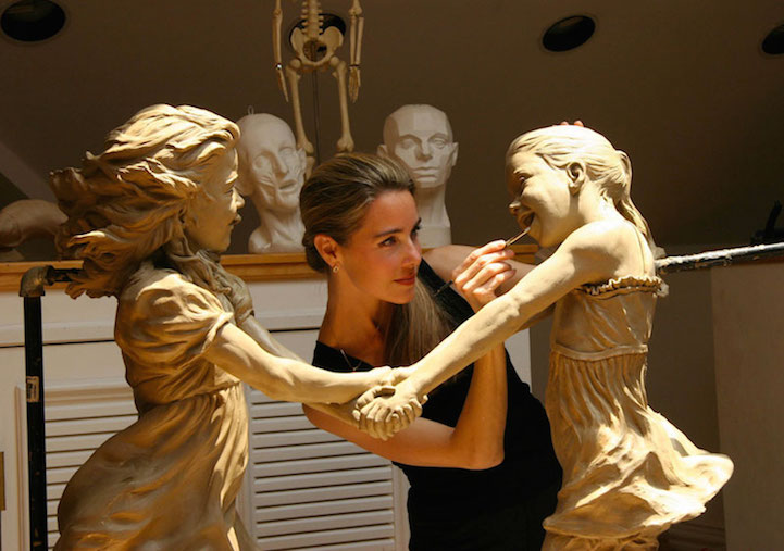 Angela Mia De la Vega breathes a realistic beauty into each of her lifelike bronze sculptures. For De la Vega, sculpting is an opportunity to capture what is happening around her, a way to share her vision with the world before it fades away. Her body of work is particularly saturated with youthful figures engaged in energetic and playful activities. Within her forms, she expertly employs light and shadow in order to inspire an emotional connection between her work and her audience, so that one may see a reflection of life within each sculpted face.