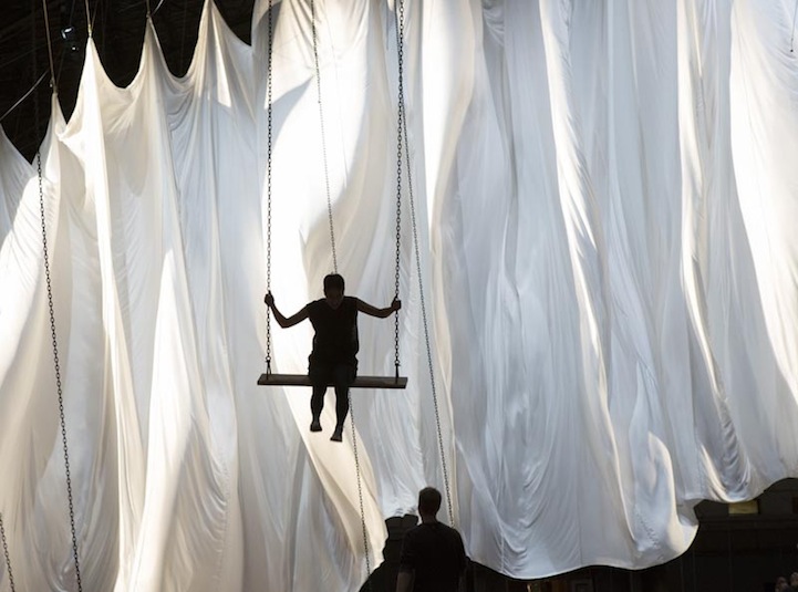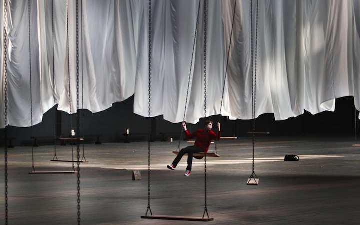 Who says that only kids can play on swings? This large-scale multimedia installation titled the event of a thread by visual artist Ann Hamilton invites an interactive audience to revisit their playful childhood and ride the 42 swings that have been set up. The 55,000-square-foot space boasts a giant billowing white curtain that separates the hall. The towering curtain is, in fact, controlled by the back and forth swaying motion of people on swings. The installation proves to be about far more than simple playground fun. It is, perhaps, more of a metaphor about life and human connectivity.