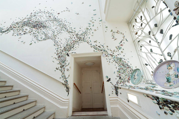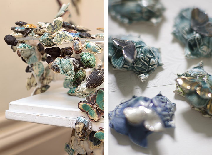 Several years ago, Anna Collette Hunt “stirred the swarm,” summoning 10,000 insects into the towers of Wollaton Hall, which is home to the Natural History Collection in Nottingham, England. These weren't real bugs, but were handmade ceramics created by Hunt. The impressive collection of gold and jewel-toned creatures swirled across the walls and down the stairs of the Hall. Each insect was unique and had subtle variations–some were missing wings or limbs.