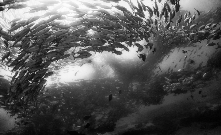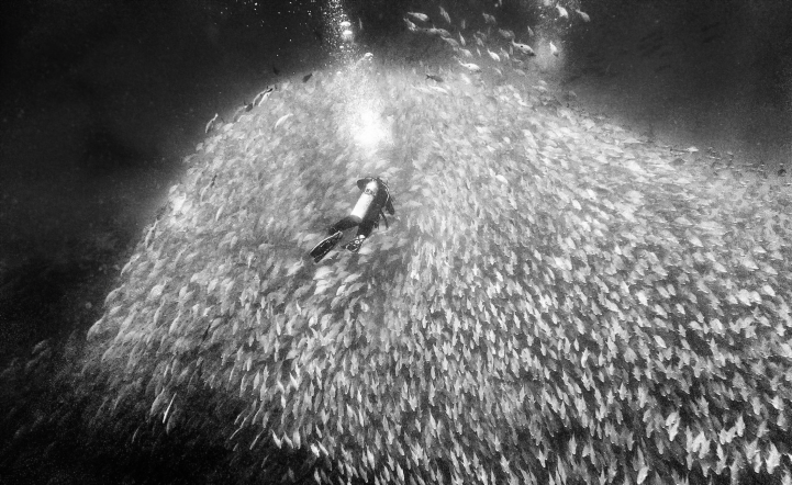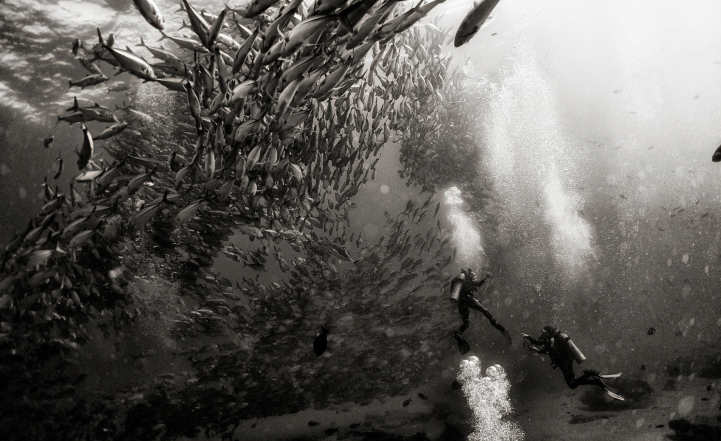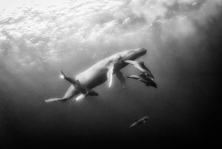 In addition to the winning photo, Floriuk's other images from the Roca Partida expedition are just as marvelous to behold. Rendered mostly in black and white, the striking shots unveil the beauty of the ocean and its creatures, from whales to dolphins to sharks to fish. Illuminated in gentle sunlight filtered through rocking waves, the underwater world depicted through Floriuk's lens is both mysterious and lovely, flowing with life.