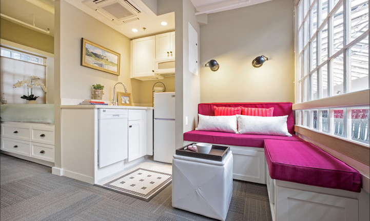 Starting at an affordable $550 a month, residents can rent an Arcade Providence, one-bedroom unit that's 225 to 450 square feet in size. Inside, there's a built-in bed, full bathroom, refrigerator, sink, microwave, dishwasher, seating, and storage. For more amenities, tenants can also use the shared TV room, game room, on-site laundry facility, bike storage area, or parking garage that's located across the street. For those who would like more space, there's also a two-bedroom and three-bedroom unit available. The only catch is that there's a waiting list with about 4,000 people currently on it.