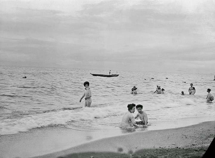With a feel for visually interesting compositions and restless background lines, Genthe’s images of Japan maintain a very human focal point. The hectic details of the shots create an atmosphere that tells of a bustling daily life which transcends the film. Featuring a range of cultural scenarios, which include young women in traditional garb, locals taking a dip at the beach, and children roaming the streets while keeping an eye on the foreigner with a camera, Genthe was able to capture a distinct flavor of Japan over a century ago.