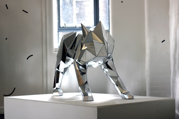 In an interview with Watch Me Pivot magazine, Gregory said, “I applied digital aesthetic as it appears to the human eye. My aesthetic is digital, but most of my work is in analogue format. My sculptures have this contrast: they look like something that could be produced on an industrial scale, out of a machine.” The chunks of mirrored triangle and trapezoid pieces fit very deliberately together in what could be considered a tangible representation of a pixelated object. Thus, in these depictions of living animals, Gregory is able to combine modern concepts of technology with the classic techniques of sculpture.