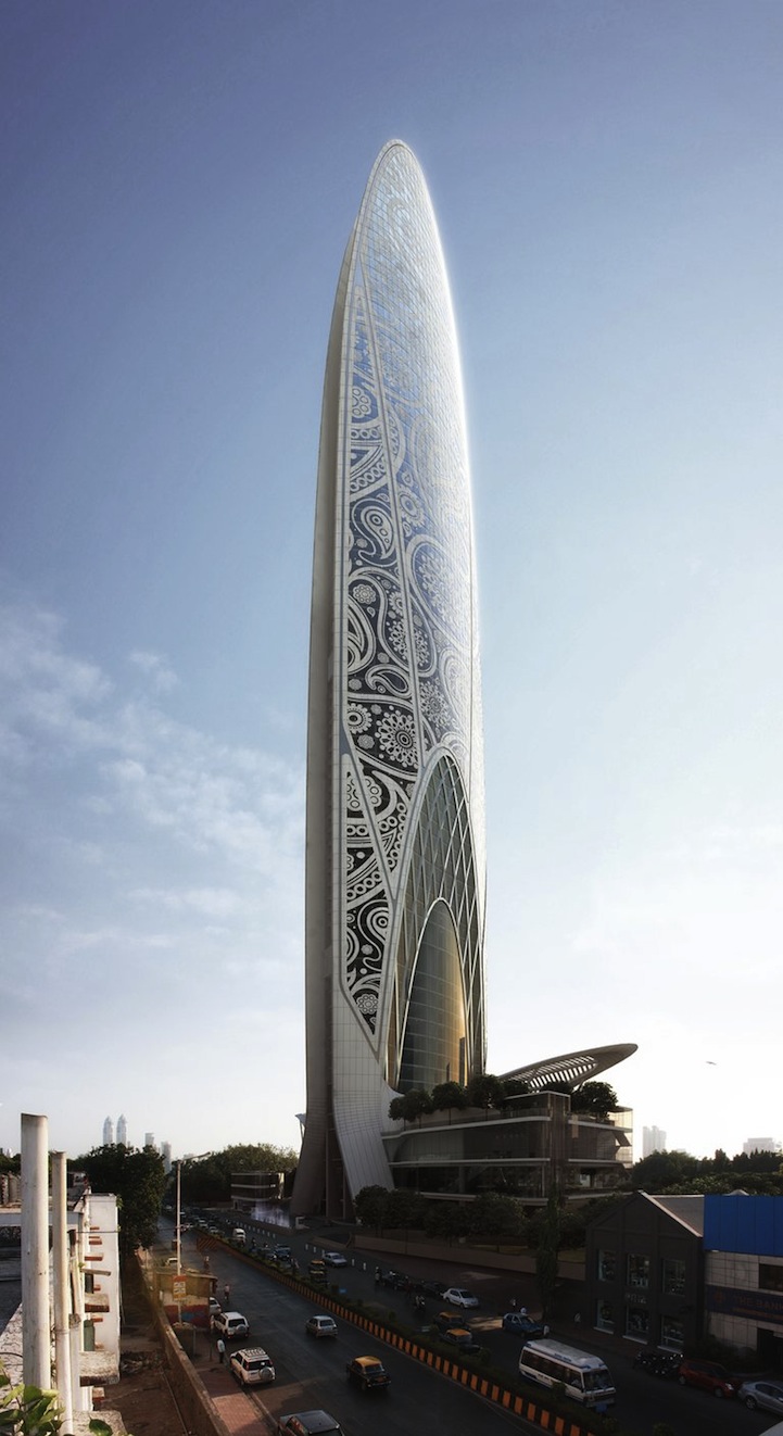 Mumbai, India is about to unveil a gorgeous new skyscraper to the world. Designed by Atkins Design Studio for W Hotel, the Namaste Tower aims to become a landmark structure, representing the burgeoning economic and cultural significance of India. The 62-story, 984-sq-ft tall building, which is currently under construction, will include a hotel, office and retail space.