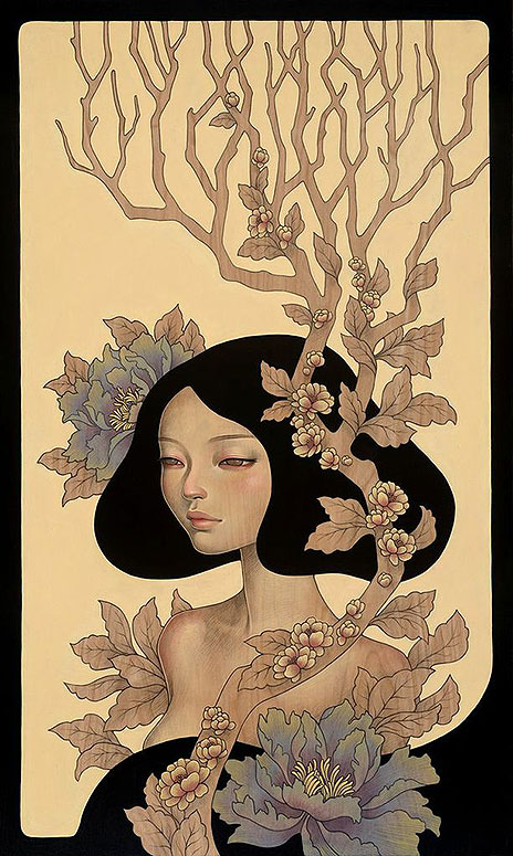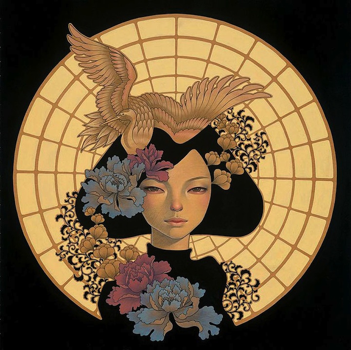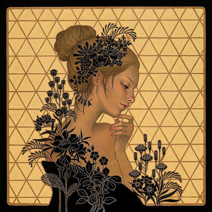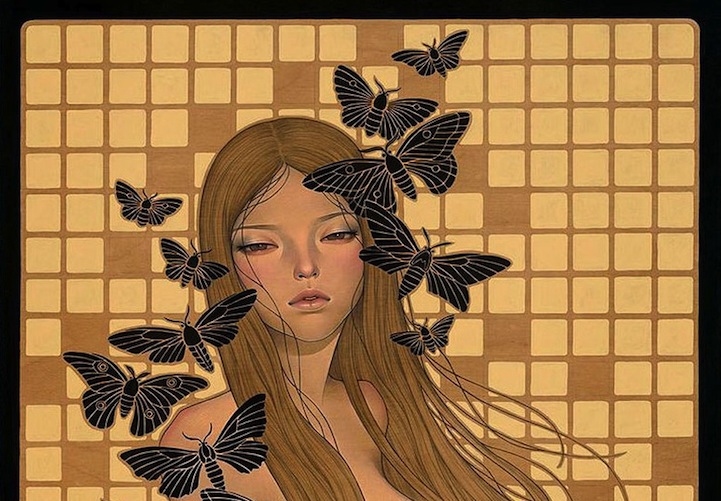 Los Angeles-based artist Audrey Kawasaki is back with a gorgeous new set of wood panel paintings she's created just for Thinkspace gallery's new show at SCOPE art fair in Miami Beach. Running during Art Basel week, or December 3 to December 8, SCOPE brings together over 100 intentional galleries all under one roof, which each feature work from emerging contemporary artists. This year, SCOPE is at its new location, a huge 70,000 sq. ft. pavilion right on the sands of Miami Beach.