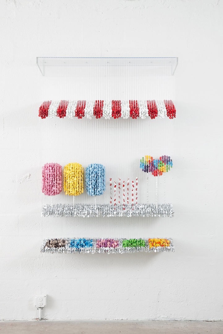 The artist says, “I am often obsessed with comparisons of reality and potential and the balance between them, in art: the idea of chaos in perfect order: an object seemingly solid to the eye can also be fragile and inconsistent to the touch; a common object used to create a piece of art becomes transformed into something complicated and intriguing.”
