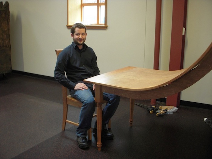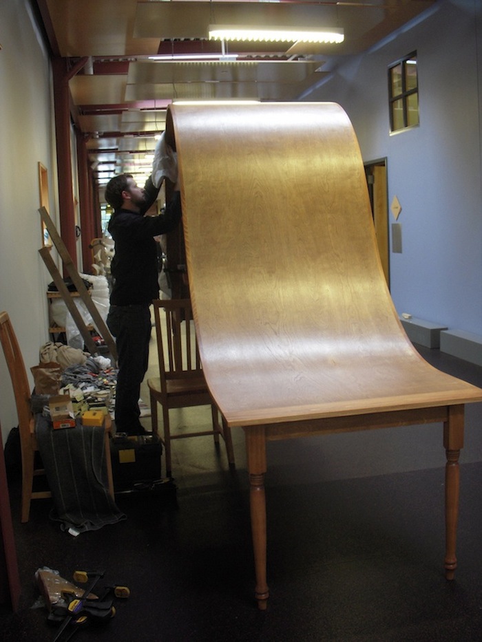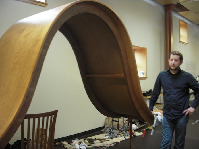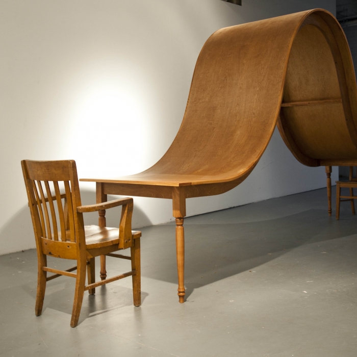 “My current work is concerned with parallels between human emotional states and the mass produced design objects we live with and within,” explains Beitz. “I explore ideas through drawing, printmaking, and sculpture. My experience as a furniture maker working in various shops for the past ten years has started to influence my present work, as I have started to use furniture design itself to discuss and interpret my own interpersonal relationships.”