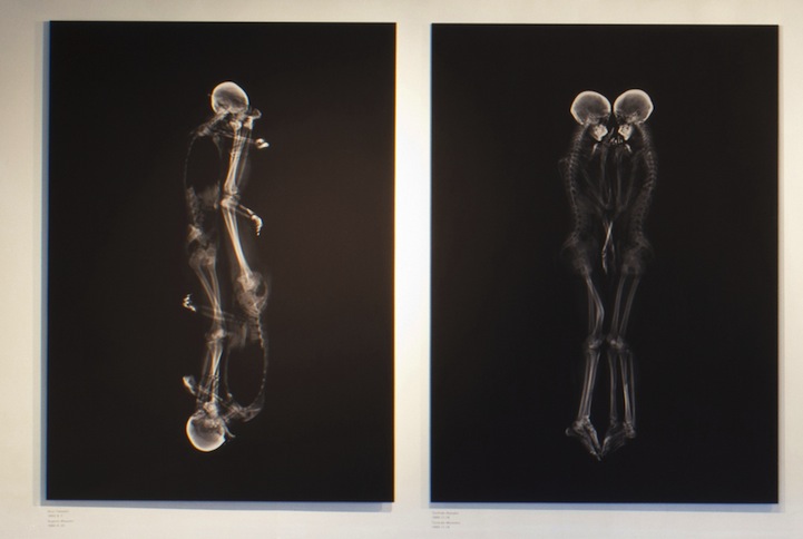 The raw images portray the human body as muscles and bones, and the lack of soft skin eliminates the viewer's normal understanding of human touch. The story of the two forms is told, rather, through gestures and body language, and viewers are left to determine the relationship between the couples. “X-ray images usually show the finite nature of our bodies composed only of matter. But these couples' portraits reveal a pulse that isn't normally seen,” explain the two students from Musashino Art University in Japan.