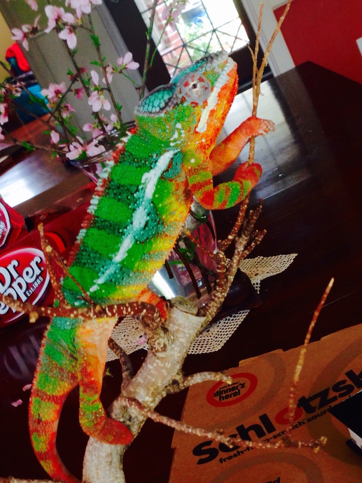 The people over at Canvas Chameleons state, “Ever wonder how they squeeze into those tiny eggs? Here is a baby Panther only seconds old that didn't realize he was out of the egg.” When asked for more details, they replied, “I had to help him out of the egg. I don't believe he would have been able to do it on his own as it didn't pip correctly so I helped him out.”