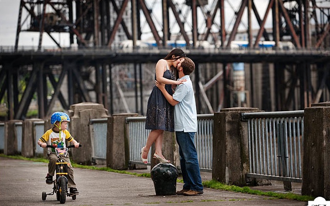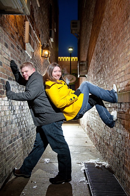 Overall, they may have romantic intentions behind their photo shoots, but they ultimately share an unmistakable element of humor that winds up matching and, at times, overpowering their wonderful news. They're the ones with awkward hand gestures, photos of couples eating corn dogs together for no apparent reason, and quirky characters inadvertently mooning the camera and stealing the attention in the background.