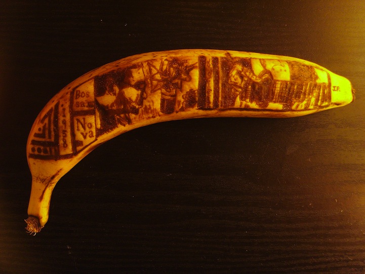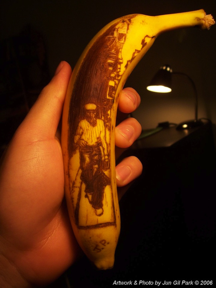 Australian artist Jun Gil Park has the unique talent of carving drawings into bananas! He allows the natural oxidation of the scraped skin to bring the image out. What an incredibly creative way of making food art!