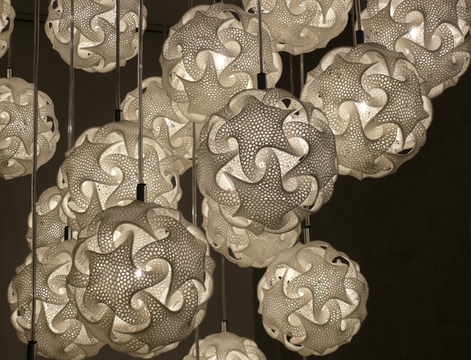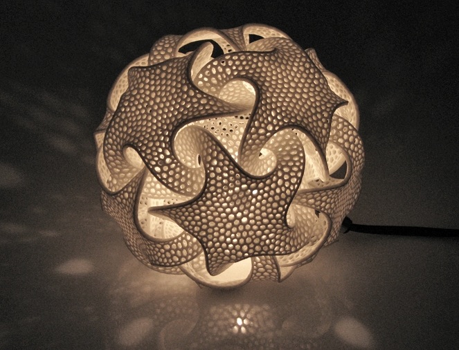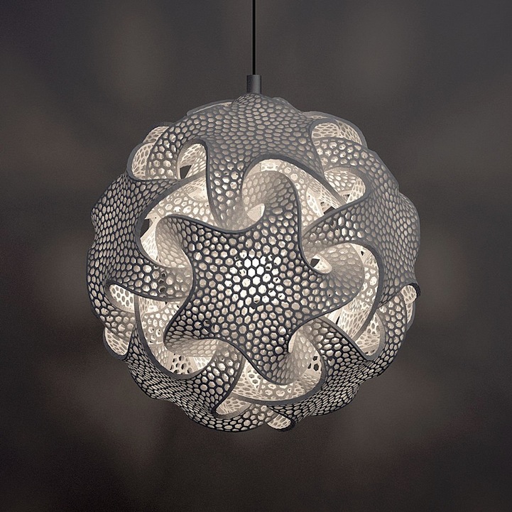 Artist Bathsheba Grossman has a great eye for beautifully symmetrical geometry. For more than twenty years, she has produced all kinds of complex, mathematical designs that she transforms into tangible objects through the technologically advanced process of 3D printing. In collaboration with .MGX–pioneers in 3D-printed designer lighting and furniture–many of Grossman's designs are available as unique lamps and lighting systems. Flame, Quin, and Torus are just three examples of the stunning curves and textured twists that Grossman has imagined and then transformed into reality. The modern concepts, which illuminate any room with soft and interesting lighting patterns, are available as table lamps, floor lamps, and even pendants.