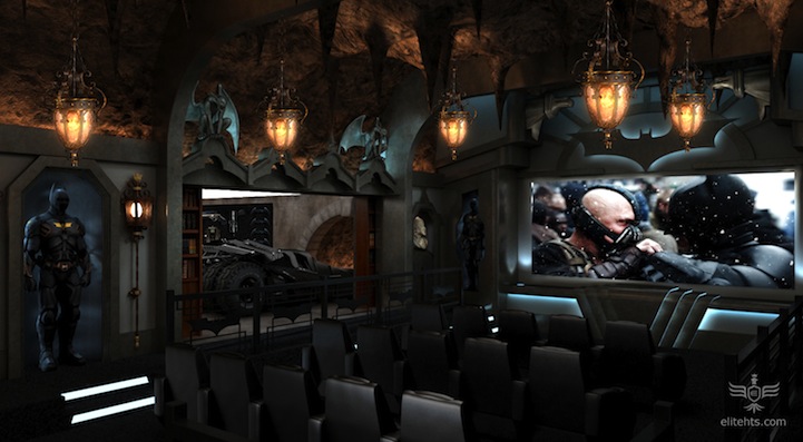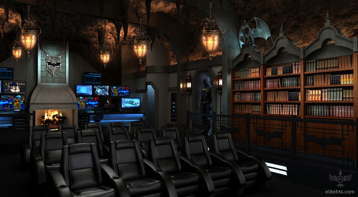 In honor of the recently released movie, or possibly in honor of all of the Batman movies as a whole, a private home owner in California is having Elite Home Theater Seating of Surrey, British Columbia design this Batman-themed home theater for the owner's personal movie enjoyment. The company will collaborate with builders to construct the $2 million room, which they say was based on fusing together “the cozy elements of Wayne Manor with the Art Deco style of Gotham City.” These images are a computer rendition of the space, to be completed this November 2012, which will span 12,000 square feet!