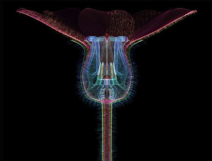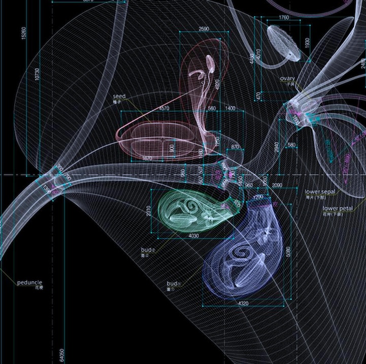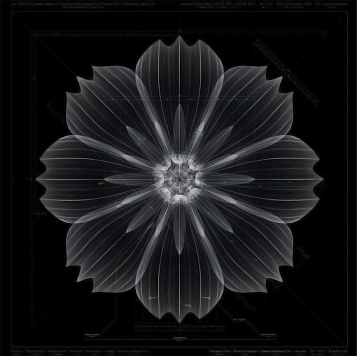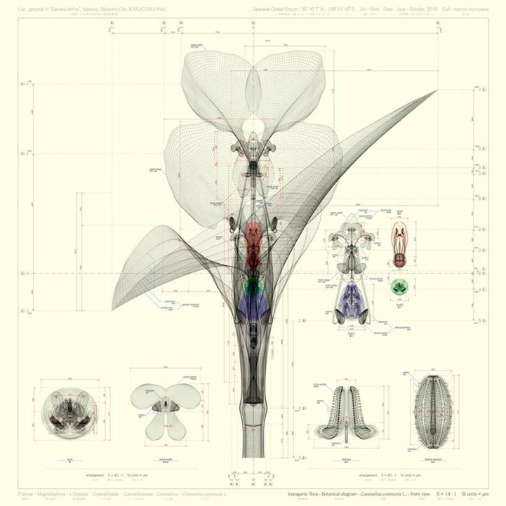 Created by Japanese artist Macoto Murayama, Inorganic Flora shows us new observations and studies of flowers like never before. He first takes a number of photos and sketches of plants from nearly every angle. He then uses an array of digital programs, like Adobe Illustrator and Photoshop and even 3-D modeling, to create highly visual works. By highlighting and separating specific pieces of the flora, Murayama wants to show the technical and almost mechanical aspects of these organic organisms.
