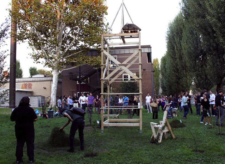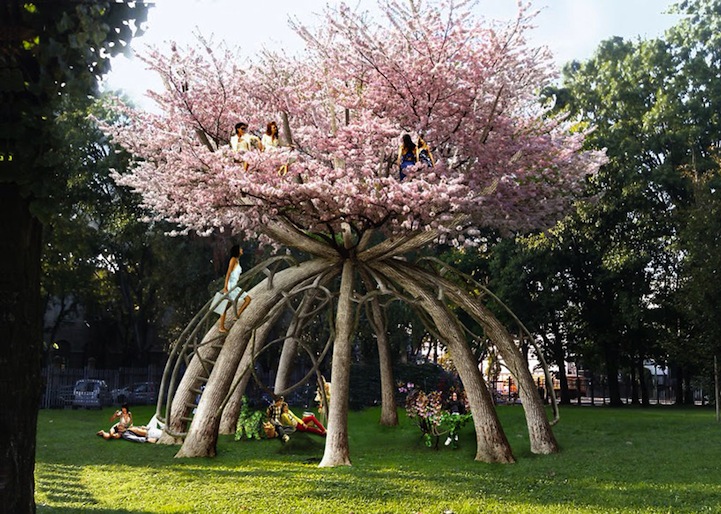 What a surreal idea! “The Patient Gardener” is the product of a weeklong workshop conducted by Visiondivision. Ten Japanese cherry trees have been planted in a 26 foot diameter ring (8 meters), and will slowly grow into their bent design. The saplings are being pulled toward a tower in the center that will be removed once the trees are strong enough and won't unbend. The Japanese cherrys will also be grafted with other trees to form handrails and stairs. The structure will be two-stories tall and even feature all natural furniture such as a grass armchair. So when will it be complete? We advise you to not hold your breath. The Patient Gardner will be ready in an estimated 60 years!