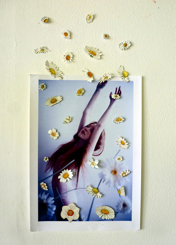 For Yen Magazine, photographer Rebekah Campbell teamed up with artist Ben Giles to create a beautiful set of collages that overlaid Ben's color-bursting flowers over Rebekah's stellar photography. This isn't the first time Rebekah has collaborated on a project with an artist but she calls it her favorite so far. Redheaded model Lauren Isabeau was the muse in the photos which featured her in a variety of sweet and seductive poses. While in one photo, the model's outstretched arms are covered with a waterfall of daises, in another, a flock of birds come to rest serenely on her arm. The collaboration couldn't be any more perfect for Yen's Creative Issue.