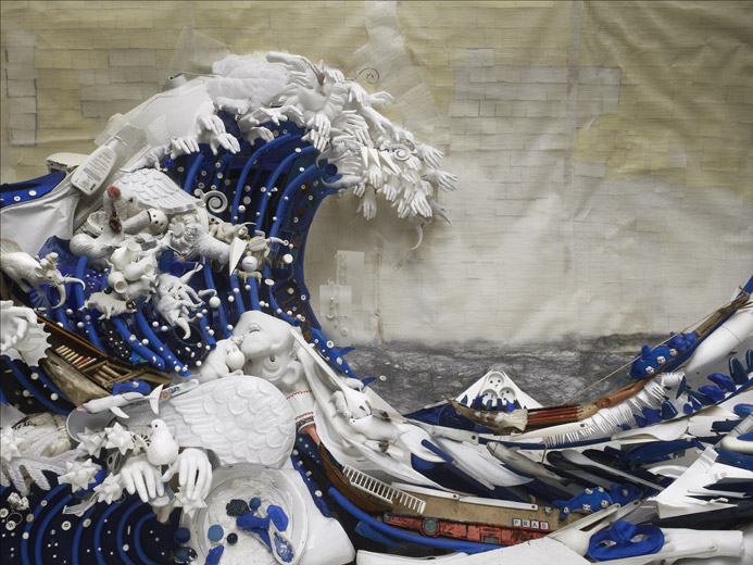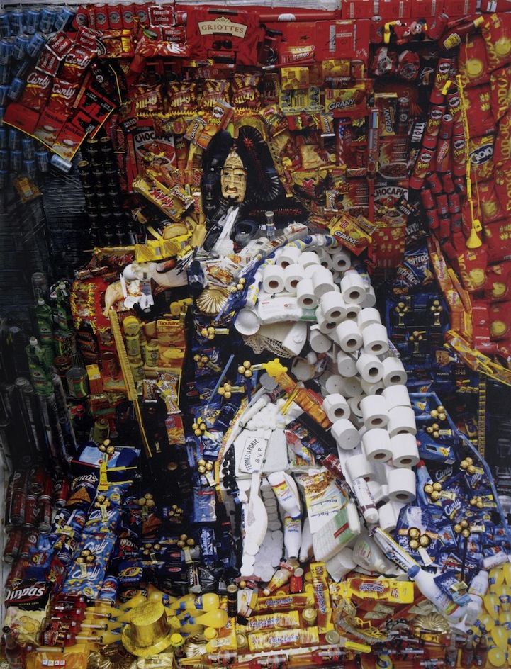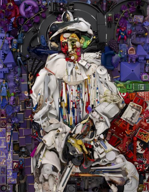 French artist Bernard Pras uses junk and discarded materials to create his large-scale “paintings” whose visual construction bears a resemblance to that of artist Vik Muniz's junkyard masterpieces and shredded magazine collages. Like Muniz, Pras focuses on classic works and the artists behind said creations. The result of his valiant efforts in compiling each of his subjects is an enormous sculptural portrait composed of random yet carefully placed loose objects.